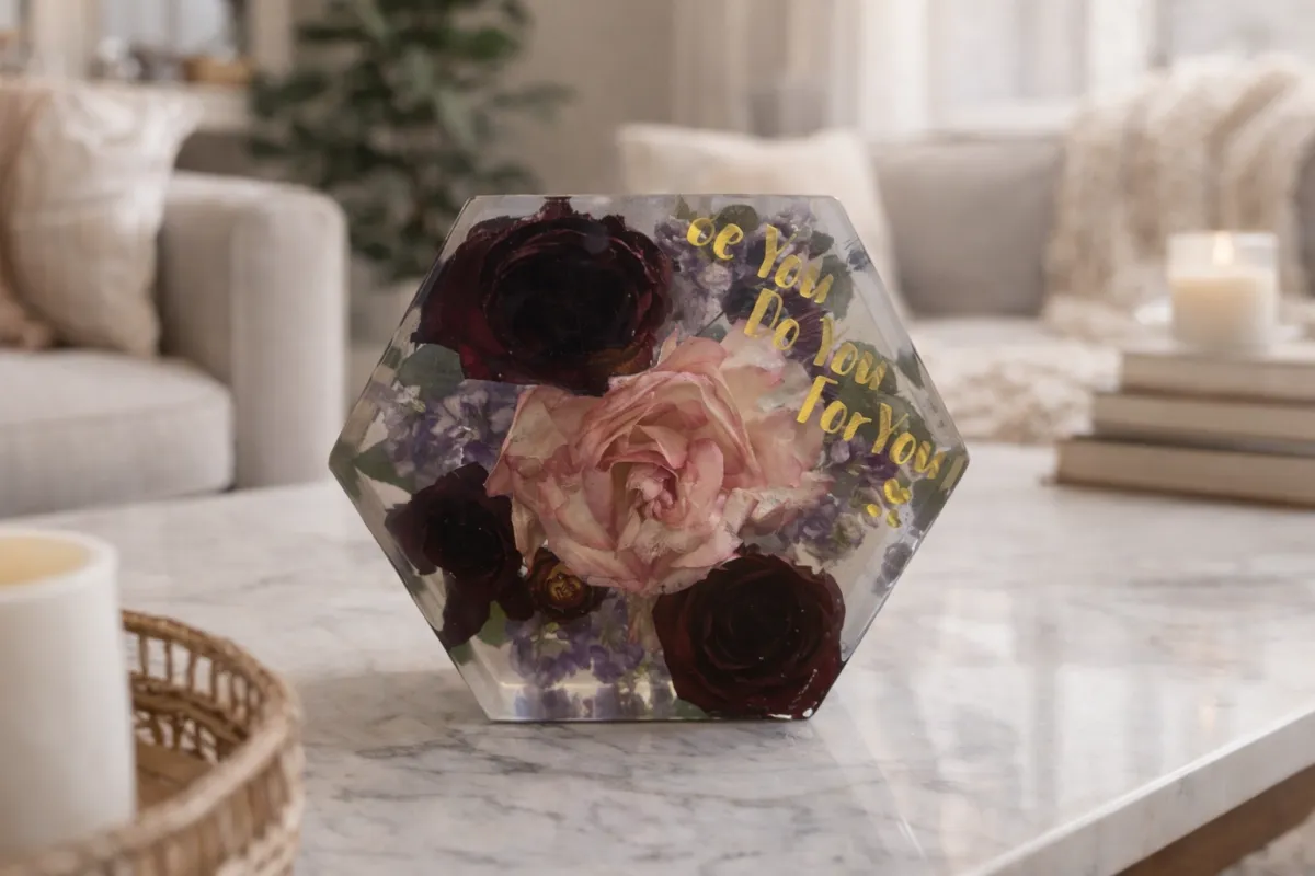 Today, I create custom resin pieces that preserve what matters most—whether it’s from a wedding, a special day, or something deeply personal.